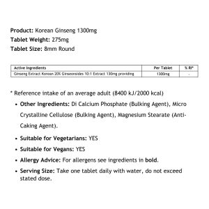 Uksupplementmanufacturer - Our Products - Supplement - Korean Ginseng 1300mg